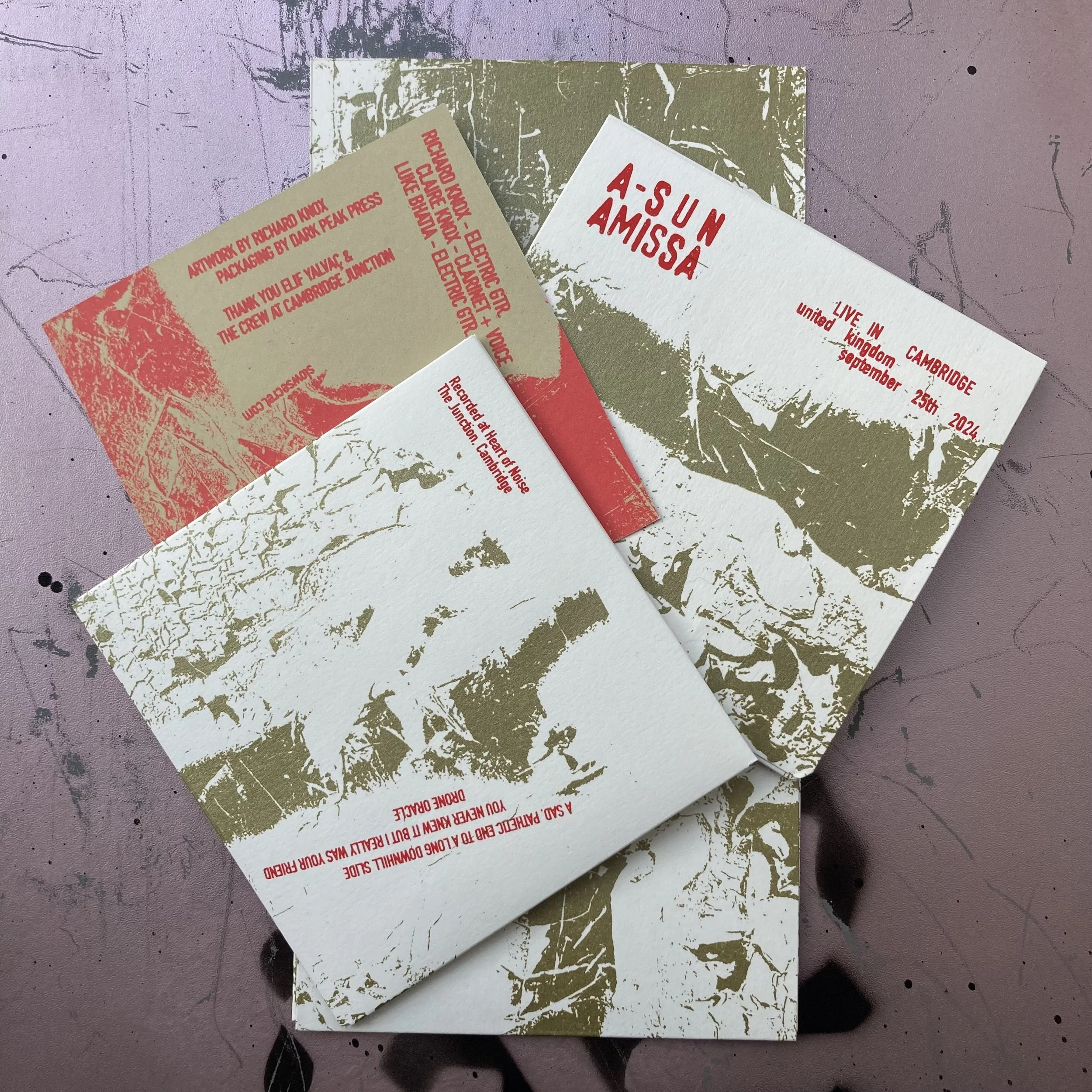 Throughout A-Sun Amissa's existence it's forever been the case that traditional methods of working don't really ever come into the equation. Such an approach continues here as the band were invited to perform at ATG festival in 2024. Whilst most artists would pull out the big hitters for a festival crowd, A-Sun Amissa decided to write and perform a new 30 minute brooding and heaving piece of drone music, aptly titled 'Drone Oracle'.